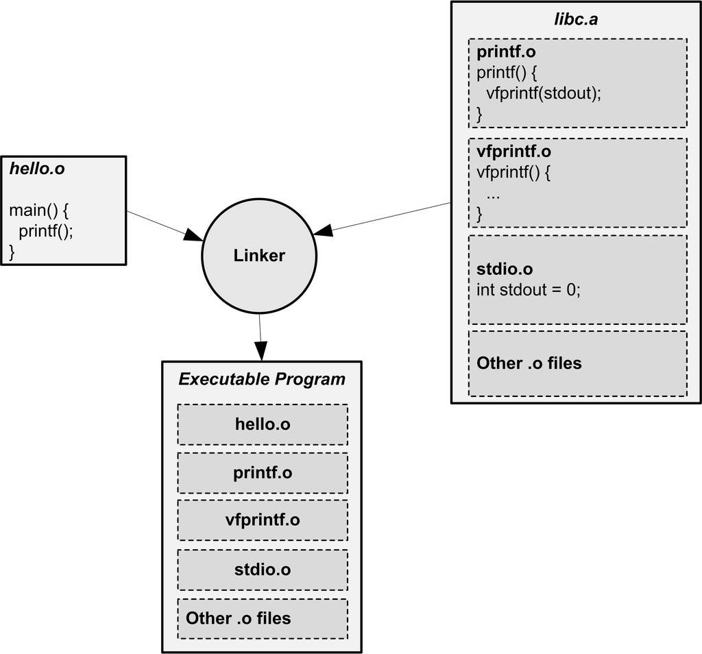 这些问题看似很简单但实际上有很多值得深入挖掘的地方,比如第一个问题围绕着main函数执行前后可以延伸出一大堆问题:程序入口、运行库初始化、全局/静态对象构造析构、静态和动态链接时程序的初始化和装载等。我们把这些问题归结起来,发现主要是三个很大的而且连贯的主题,那就是“链接、装载与库”。